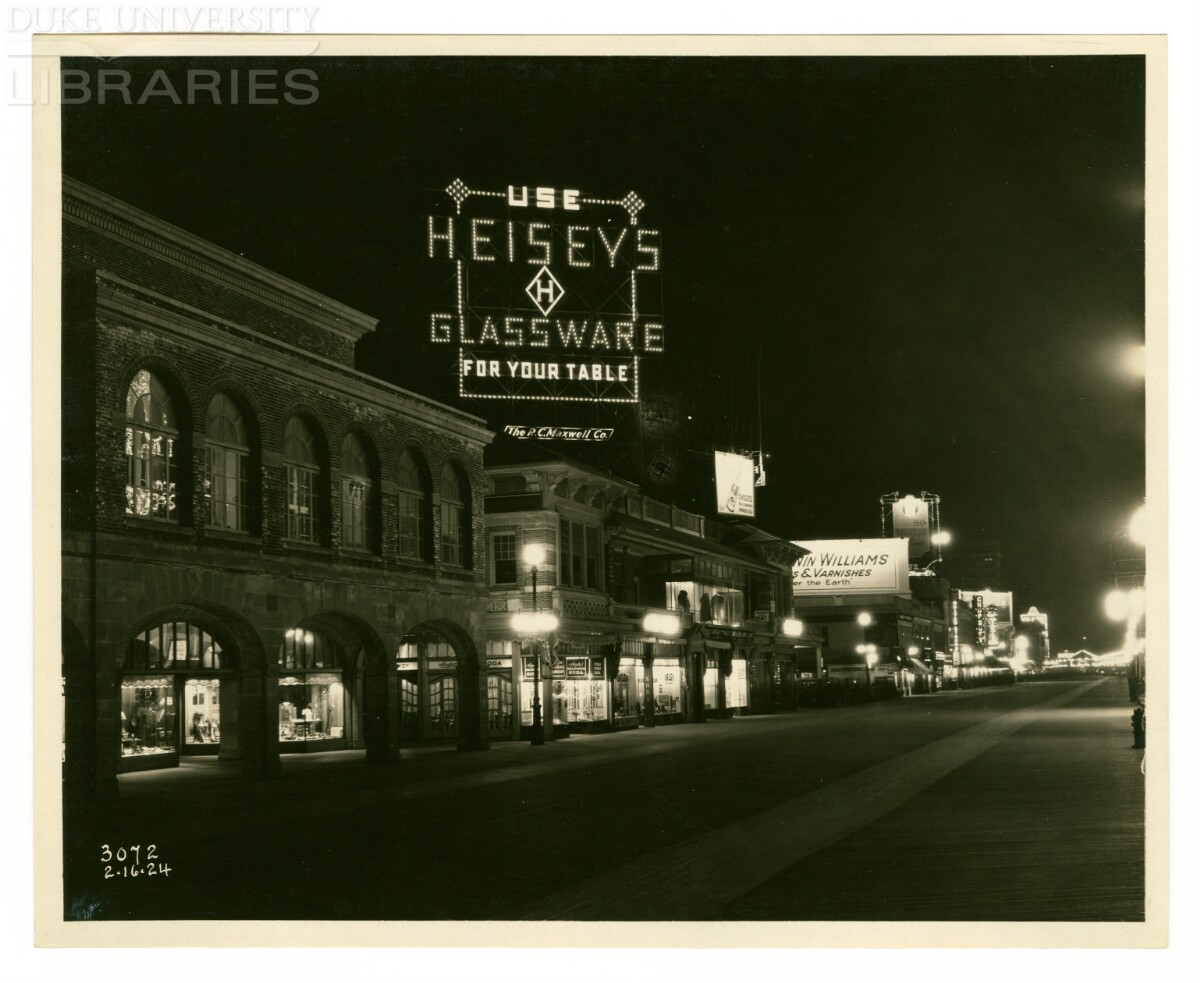 The other well known Heisey outdoor advertising sign by R.C. Maxwell Company is the one on the Atlantic City Boardwalk dating from the early 1920s. An article by Vicki Meehan that appeared in the June 2002 issue of Heisey News, states: