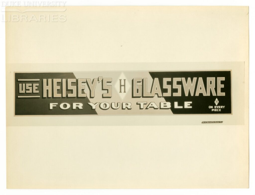 Radio ads ranging from the late 1920s to the 1940s are discussed in articles written by Micki Wareham in the March 2010 issue of Heisey News and by Michael Maher in the August 2015 and January 2016 issues. You can hear some of these radio ads, recreated from surviving scripts, playing in the Heisey Museum thanks to the efforts of Michael and others. Past issues of Heisey News are available on the Heisey Museum website.