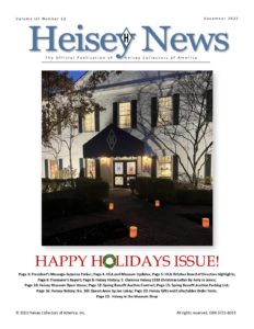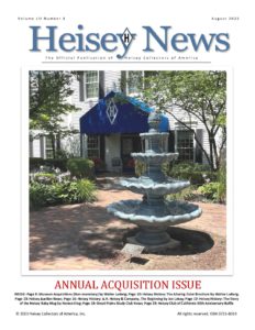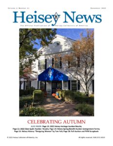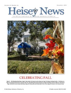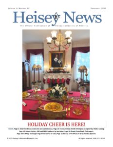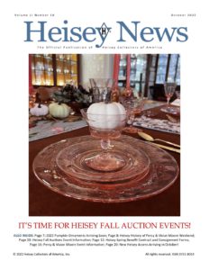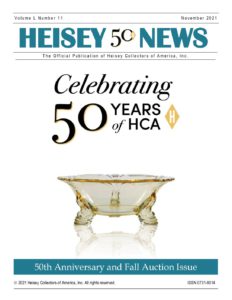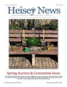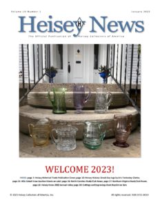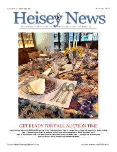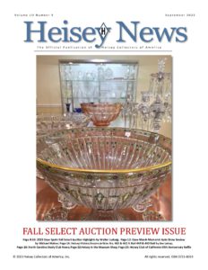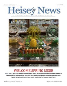 The goal of the initiative is to provide access to past issues of Heisey News (the official magazine of Heisey Collectors of America) to anyone seeking to learn about Heisey glassware. All issues except current issues are available to the public. Current issues are available to HCA members only for a period of one year from the date of publication. Members can access current issues by going to Member Login under the Membership tab.