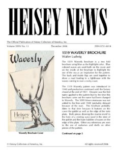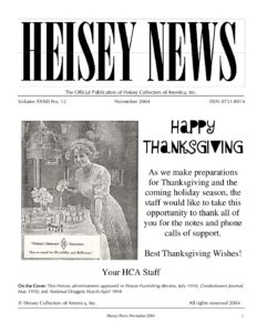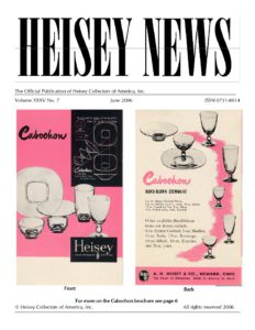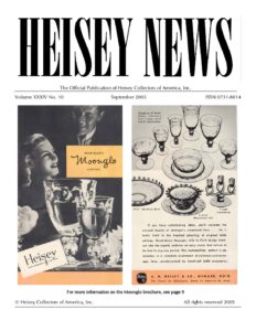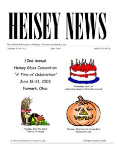 The goal of the initiative is to provide access to past issues of Heisey News (the official magazine of Heisey Collectors of America) to anyone seeking to learn about Heisey glassware. All issues except current issues are available to the public. Current issues are available to HCA members only for a period of one year from the date of publication. Members can access current issues by going to Member Login under the Membership tab.