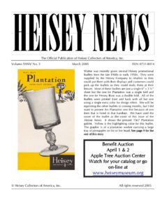 More than 50 years of newsletters are available, providing a wealth of information about Heisey glass. If you are looking for information about your grandmother’s Heisey goblets or a piece of Heisey you spotted on eBay, you probably will find it in this archive.